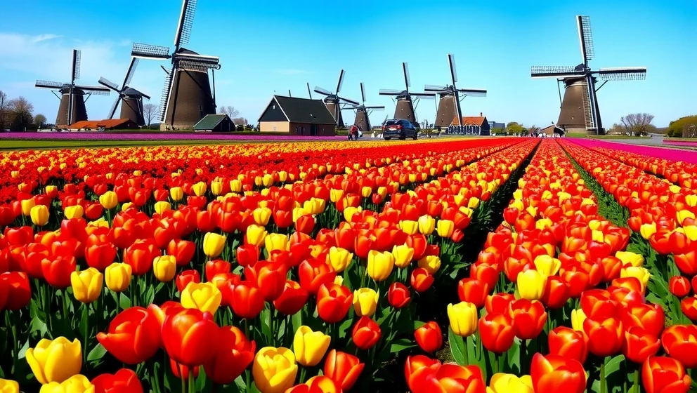 För den som vill uppleva de ikoniska vidsträckta tulpanfälten behöver man ta sig utanför Amsterdam. De mest imponerande fälten finns i områden som Noordoostpolder och Nordholland. Här breder enorma fält ut sig med rader av tulpaner i olika färger som skapar ett levande lapptäcke över det platta holländska landskapet.