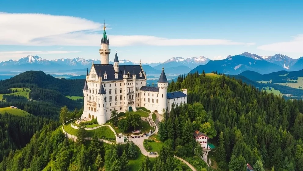 Neuschwanstein slott är ett av Europas mest ikoniska byggnadsverk och ligger i byn Schwangau nära staden Füssen i den tyska delstaten Bayern. Detta praktfulla slott, som årligen lockar över 1,4 miljoner besökare, byggdes på order av kung Ludwig II av Bayern och påbörjades 1869. Trots sin medeltida och romantiska arkitektur är slottet faktiskt ett relativt modernt byggnadsverk från 1800-talet..